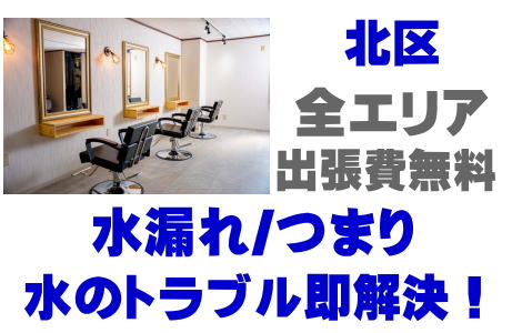 北区理容室漏水修理 / 北区ヘアサロン水道工事 / 北区美容院水道業者 / 北区美容室指定工事店 / 北区理容室排水管清掃 / 北区ヘアサロン排水溝つまり