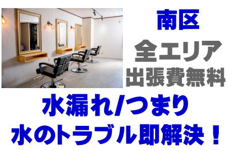 南区理容室漏水修理 / 南区ヘアサロン水道工事 / 南区美容院水道業者 / 南区美容室指定工事店 / 南区理容室排水管清掃 / 南区ヘアサロン排水溝つまり