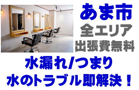 / あま市理容室漏水修理 / あま市ヘアサロン水道工事 / あま市美容院水道業者 / あま市美容室指定工事店 / あま市理容室排水管清掃 /