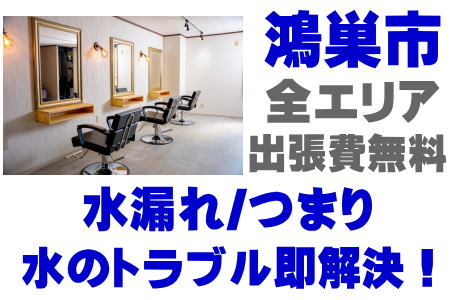 / 鴻巣市理容室漏水修理 / 鴻巣市ヘアサロン水道工事 / 鴻巣市美容院水道業者 / 鴻巣市美容室指定工事店 / 鴻巣市理容室排水管清掃 /