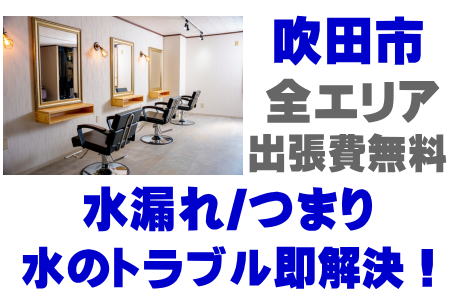 / 吹田市美容室水道工事業者 / 吹田市理容室水道修理店 / 吹田市美容院シャンプー台パイプ修理 / 吹田市美容室緊急対応 / 吹田市美容室水道トラブル